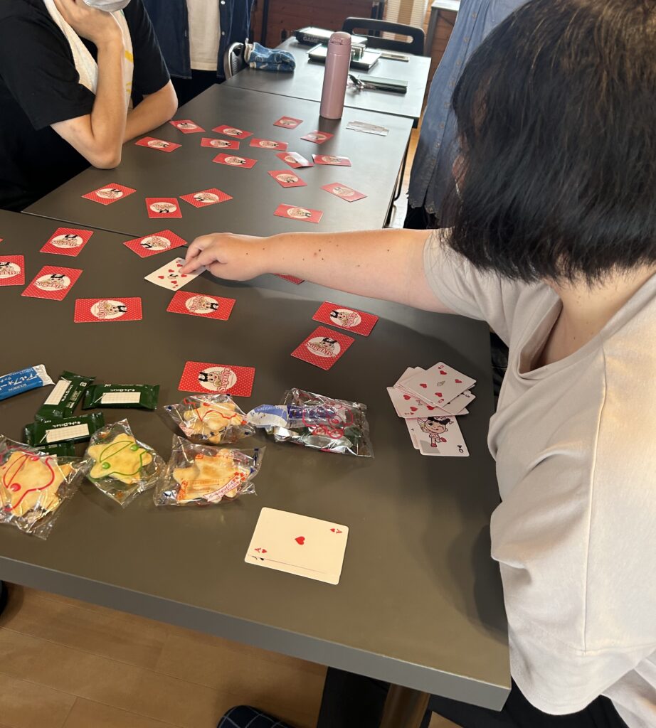 みなさんが分かる定番の遊びで、7並べをしたり、神経衰弱をしました。